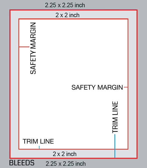 Please ensure that any important aspects of your design are inside this area, including text and logos. Leaving design elements inside of this area means that they may be cut off.
