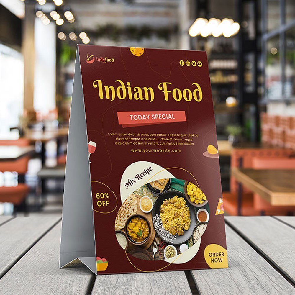 Tent Cards are an ideal tabletop display solution for promotions, branding, and information display. Designed to stand firmly on tables and counters, they are perfect for restaurants, events, offices, and retail spaces.